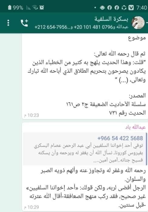 لونٌ آخرُ منْ أَلْوَانِ «الفُرْقَةِ» <بسملة 2> إن السَّلفية كمنهج ربَّاني أصلٌ من «أصول التربية» السَّوية، كما قال شيخ الإسلام ابن تيمية <رحمه الله> في «الردِّ على الشاذلي» (ص: 164). ولهذا كان هذا المنهج المبارك سببٌ من أسباب السعادةِ والأُلفة والتَّآخي والاجتماع، به يتراحم ويتعاطف أبناء المنهج ويتوادُّ ويتواصل أبناء هذه الأمة والحنيفية، على اختلاف أوطانهم وشعوبِهم وأعراقِهم وألوانِهم. بهذا المنهج الربَّاني يشارك المسلم السَّلفي إخوانَه أفراحَهم وأتراحَهم؛ يُفرحه ما أفرحَهم ويُحزنه ما أحزنَهم، <{><{>إِنَّما المُؤْمِنُونَ إِخْوَةٌ<}> [الحجرات:10]، «مَثَلُ الْمُؤْمِنِينَ فِي تَوَادِّهِمْ وَتَرَاحُمِهِمْ وَتَعَاطُفِهِمْ مَثَلُ الْجَسَدِ، إِذَا اشْتَكَى مِنْهُ عُضْوٌ تَدَاعَى لَهُ سَائِرُ الْجَسَدِ بِالسَّهَرِ وَالْحُمَّى» رواه مسلم. وفي الأثر: عن يوسف بنِ أَسْبَاطٍ، قال: قال سفيان: «يَا يوسفُ، إذا بلغَك عن رجلٍ بالمشرقِ صاحبِ سنَّة فابْعث إليه فالسَّلامِ، وإذا بلغَك عن آخر بالمغربِ صاحبِ سنَّة فابْعث إليه بالسَّلام، فقد قلَّ أهلُ السنَّة والجماعةِ» رواه أبو نعيم (7: 34). وله (3: 31): عن سوار بن عبد الله، قال: سمعت المعتمر، يقول: «مات صاحب لي كان يطلب معي الحديث فَجَزَعْتُ عليه، فرأَى أبي جَزَعِي عليه، فقال: يا معتمر كان صاحبك على السنة؟ قلت: نعم، قال: فلا تَجْزَعْ عليه أو لا تَحزن عليه». وهذا تفاؤلا بحسن عاقبته. هذا موجبُ تلك «التربية» وأثرُها في أبناء الأمَّة. لكن مما يُؤْسف له أنْ نبتت نابتةٌ في هذه «الفُرقة» التي ابتلينا بها عَكَسَتْ أثرَ هذا المنهج المبارك باسم المنهج نفسه والانتماء إليه -زعموا-؛ نابتةٌ امتلأت قلوبُها غيظاً وصدورُها ضيقاً من أهل هذا المنهج الربَّاني، فرمتْهم بالفواقر في محياهم ولم يسلم منهم أهلُه حتى في مماتهم، مع عُظْم حرمة الميت شرعاً في نفسه وحاله. قال <صلى الله عليه وسلم>: «كَسْرُ عَظْمِ الْمَيِّتِ كَكَسْرِهِ حَيًّا» رواه أحمد، وأبو داود، وابن ماجه، وغيرهم. هذا في ذاته ونفسه، أما في حاله، فقال <صلى الله عليه وسلم>: «لَا تَسُبُّوا الْأَمْوَاتَ، فَإِنَّهُمْ قَدْ أَفْضَوْا إِلَى مَا قَدَّمُوا» رواه البخاري. وهذا الصنيع من مثل هؤلاء لا يستغرب؛ إذ الفتن معترك الشَّطط واللَّغط وركوب الجهالات، والطعن على أهل الاستقامة، وهو: ما حصل من بعض أتباع هذا المنهج «الوحش» -كما يقال-؛ منهج الدَّمار الشَّامل للسَّلفية ومعالمها، مع أخ ابتلاه المولى -سبحانه وتعالى- بـ«وباء كرونا» فكان سبب حتفِه وهلاكِه، نسأل الله تعالى أنْ يتغمدَه برحمته ويتجاوزَ عنه ويعاملَه بلطفه، وأنْ يرزق أهلَه صبراً بعده. لكن الذي يحزُّ في النَّفس -النَّفس السَّلفية- هو: ما يصدر من رؤوس هؤلاء الطائشين من المفرِّقة، ممن ألْبسوا لباس المشْيخةِ ودُثِّروا دِثَار الدَّعوة إلى الله تعالى زوراً وباطلا، ممن لا عقل لهم ولا حكمة في مجالها وميدانِها، ممن أحسنوا التَّلون بألوان عدَّة، وتقمَّصوا أقمصةً شتَّى بحسب تنوع أهوائِهم وإراداتِهم؛ أهواءٌ وإراداتٌ استخفُّوا بها عقول السذَّج من الأتباع، وبرَّروا بها جهالات وشناعات أهل الطَّيش منهم، كلُّ ذلك حفظاً لماء الوجه ونفياً للتَّبعة المخزيةِ من أثر الجهالة من جهةٍ، وذرًّا للرماد في أعينٍ عُمْش من جهةٍ ثانية. هذه العيِّنة المتلوِّنة تَلَوُّن الحرباء والمتقمِّصة أشكال وأنواع الأدوار، بطلُها وحائز قَصْب السَّبق فيها -بلا منازع- «عابث القرن» بالسَّلفية في الجزائر، و«الفتان الأكبر» الدكتور «جمعة» الحاقد، هذه الشخصية العجيبة والنفسية البغيضة الكريهة لكلِّ ما يمدُّ إلى السنَّة والسَّلفية من أبناء هذه الأمة ممن لم يوافقه على مشروعِه «العار». فاقرأوا له هذه «الفتوى الواتسابية» لتدركوا فظاعة التَّلاعب -وما أكثر أصنافه وأشكاله منه- وهو: يريد طمس تبعة آثار فُرقته وفتنتِه -وما أكثر تلك الآثار والرواسب-، سئل «جمعة» بعد انتشار جهالة وطيش «خالد ال