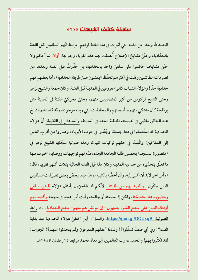 سلسلة: (كشف الشبهات) كل الحلقات من العدد: (1) إلى: (100)