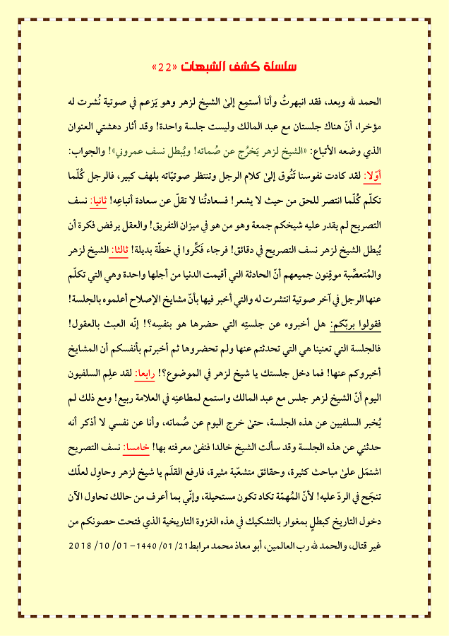 سلسلة: (كشف الشبهات) كل الحلقات من العدد: (1) إلى: (100)