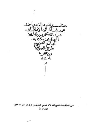 كنت أقلب نوافذ الجهاز فوجدت درة للشيخ أحمد شاكر (رحمه الله) وفيها سنده للإمام البخاري (رحمه الله)، وما يميزها أنها بخطه الجميل، فأحببت أن أمتع أنظار الطلاب بها.