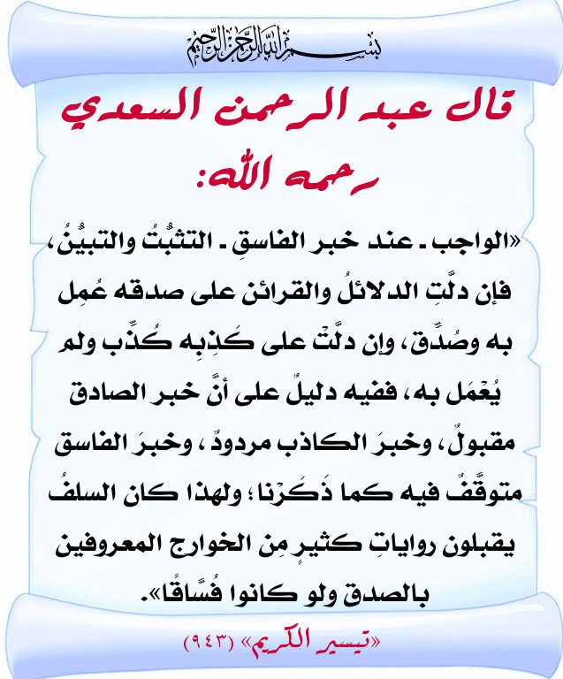 افتراضي عند خبر الفاسق .. - الشيخ السعدي - ( بطاقات دعوية )