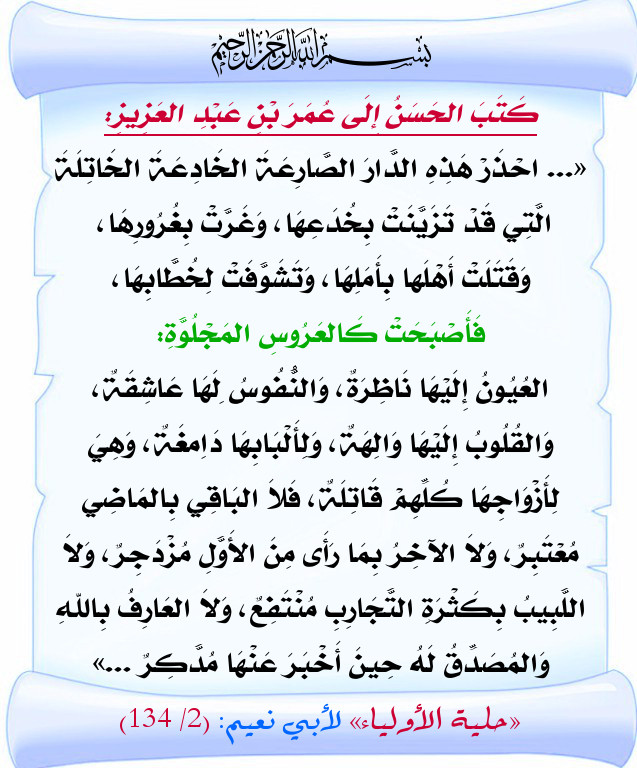 وَصِيَّةُ الحَسَنِ البَصْرِيِّ لِعُمَرَ بْنِ عَبْدِ العَزِيزِ
