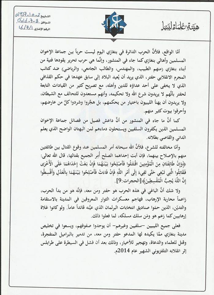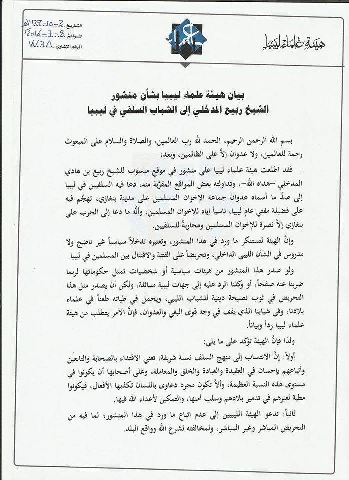 ودونكم بيان هيئة علماء ليبيا المأفون لتعلموا جهل وضلال القوم: