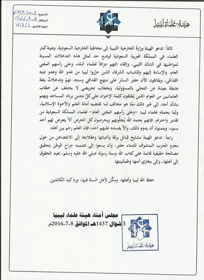 فقد رأيت كتابة مبتورة موتورة لمن سموا أنفسهم بـ (أمناء هيئة علماء ليبيا)