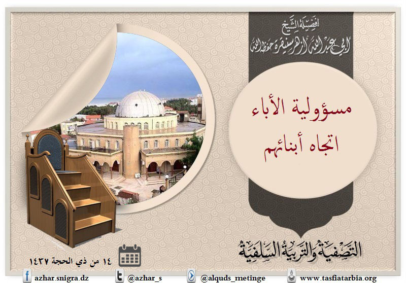 خطبة جمعة:(مسؤولية الاباء تجاه ابنائهم) لفضيلة الشيخ أبي عبد الله أزهر سنيقرة حفظه الله ورعاه/ 14 ذي الحجة 1437 هـ