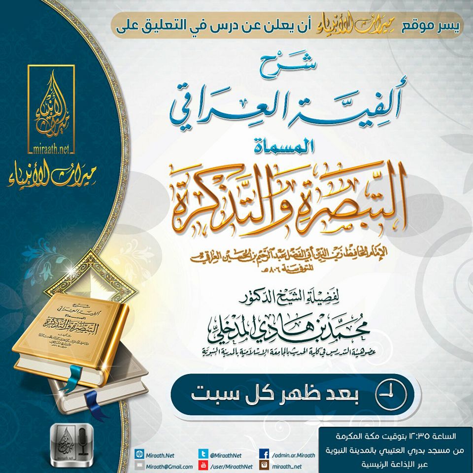 شرح ألفية العراقي المسماة التبصرة والتذكرة للشيخ الفاضل محمد بن هادي المدخلي حفظه الله.