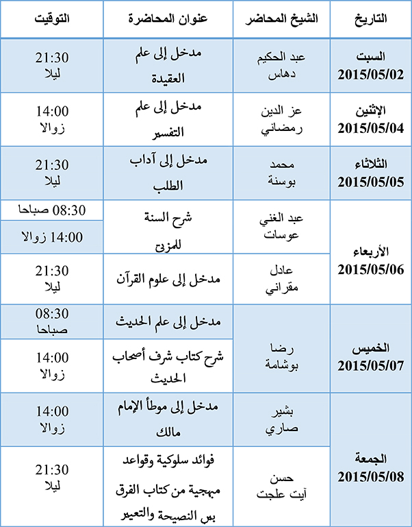 محاضرة الشيخ حسين آيت علجيت تبقى مقررة في وقتها كما هو في الجدول أعلاه .