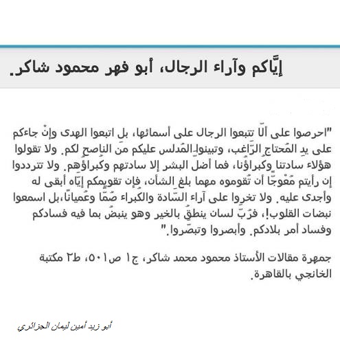 إيَّاكم و آراء الرجال, أبو فهر محمود شاكر رحمه الله.