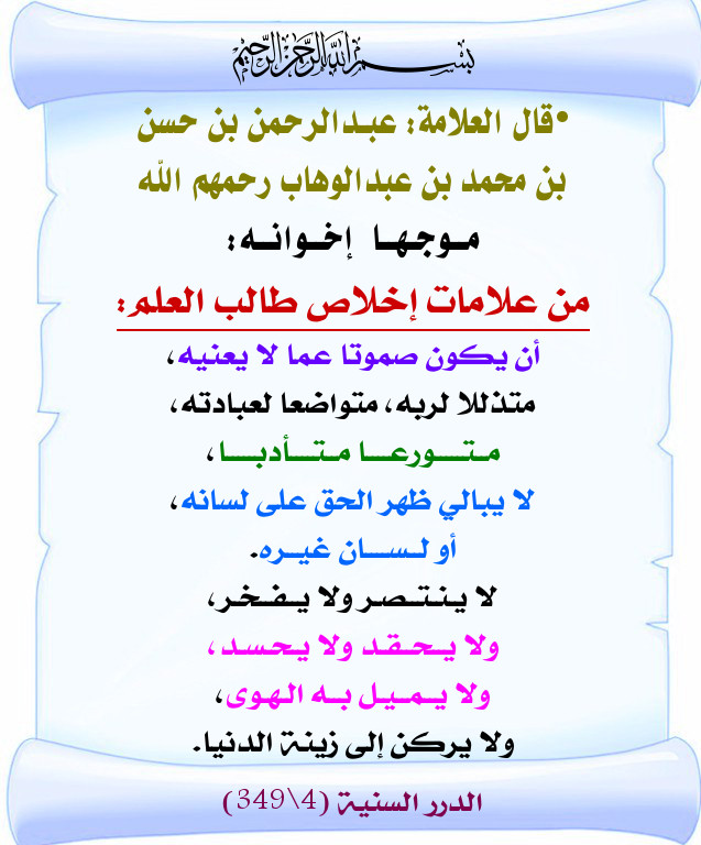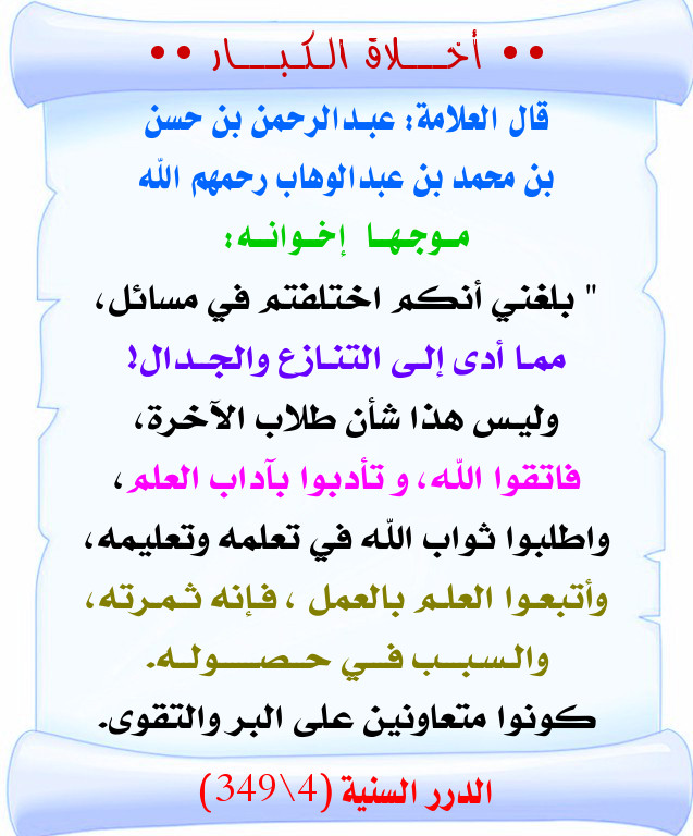 قال العلامة عبد الرحمن بن حسن بن محمد بن عبد الوهاب