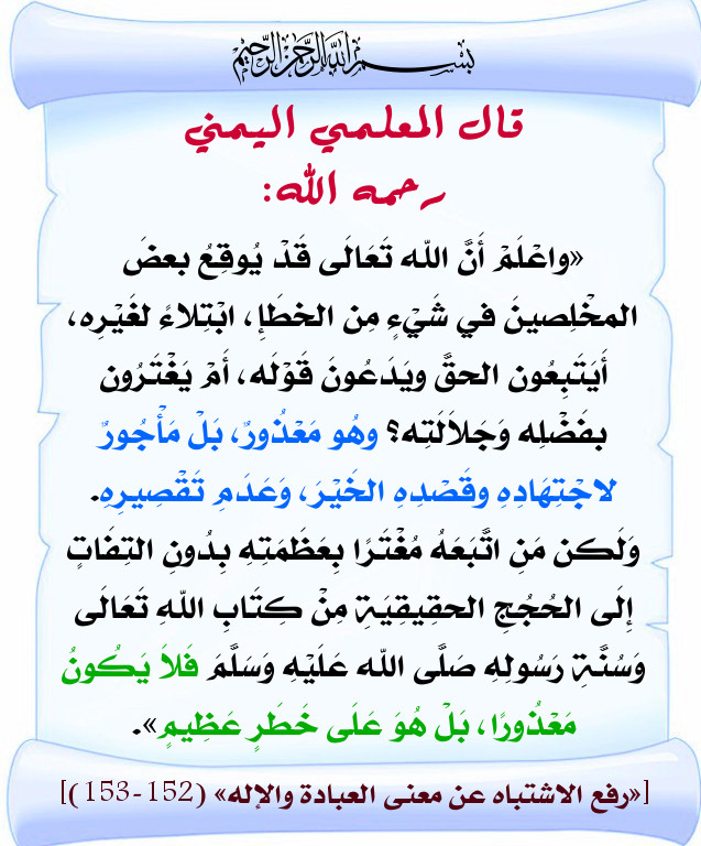 افتراضي الحكمة من وقوع بعض المخلصين في الأخطاء - للمعلمي -( بطاقات دعوية )