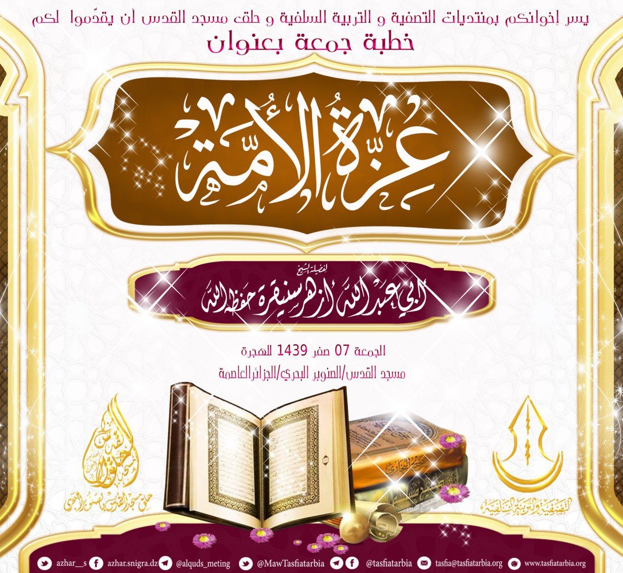 افتراضي خطبة جمعة: [عِزَّةُ الأُمّة] لفضيلة الشّيخ أزهر سنيقرة -حفظه الله -بتاريخ ٠٧من صفر ١٤٣٩ هـ