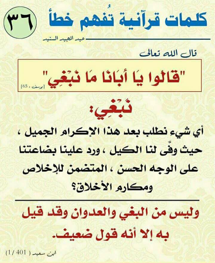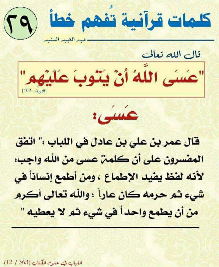 كلمـات قرآنيـة قـد تفهـم خطـأ .