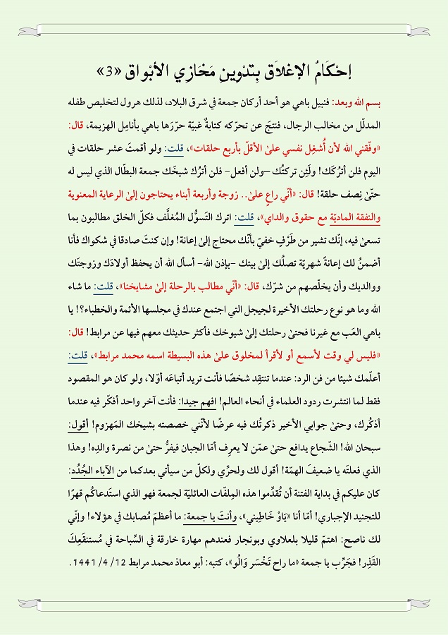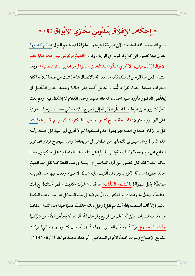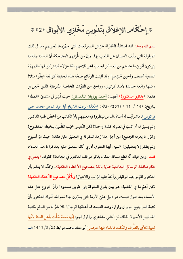 جديد: «إحْكَام الإغلاَق بِتَدْوِينِ مَخَازِي الأبْواق» الأعداد: 1-9»
