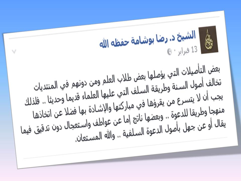 قال الشيح الدكتور رضا بوشامة حفظه الله
