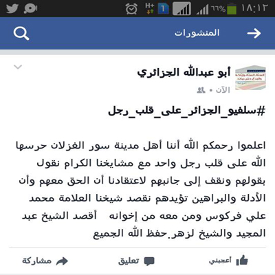 نعلمكم أن الاخوة السلفيين مدينة مستغانم على قلب رجل واحد مع مشايخنا إلا من عرفناهم بالتذبذب قبل الفتنة