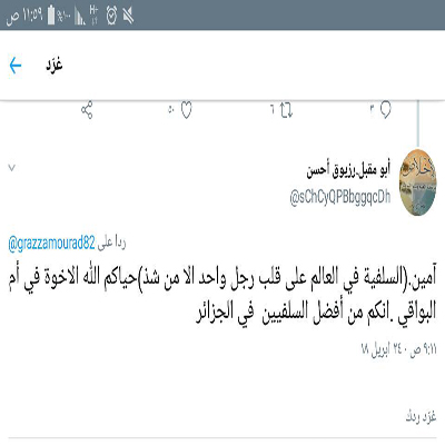 ولعل هذا ناتج عما علَّمنا إياه مشايخنا الفضلاء وعلماؤنا الأجلاء من أمثال: الشيخ ربيع والشيخ فركوس والشيخ عبد المجيد والشيخ أزهر حفظهم الله أجمعين ومتعهم بالصحة والعافية، فإن السلفية لا تقبل إلا السلفيين حقيقة.