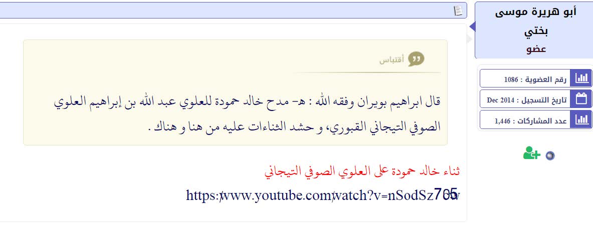 وأما بخصوص ما ذكره عني وذكره قبله ذاك الخنفشار من أني أزكي الصوفي وأمدح الصوفية وأشيد بكتبهم فأقول سبحانك ربي هذا بهتان عظيم..فهؤلاء لما لم يجدوا ما يطعنون به فيمن خالفهم ذهبوا إلى الافتراء والبهتان فمرة قضية الأرض التي إن نسوها فما نسيتها وسيأتي يوم يتذكرونها جيدا يوم لا ينفع مال ولا بنون إلا من أتى الله بقلب سليم.. ومرة قضية مدح الصوفية وقد أخذوا ذلك من ترجمة مختصرة جدا ذكرتها لصاحب النظم الذي كنت أشرحه في إذاعة التصفية والتربية لا تتعدى دقائق يسيرة ذكرت فيها اسمه ونسبه وبعض ما قيل في ترجمته وأشرت إلى أشعريته ومخالفته.. وما مدحت ولا أثنيت على صوفيته ولا زكيت كتب الصوفية والطرقية كما عنون الخنفشار ومن تبعه... والصوتية موجودة وأتحدى أي واحد يسمعها كاملة فيفهم من كلامي إشادة بالصوفية والشاذلية وما ذكروه. ولكن هذا هو الظلم والجور والله أمرنا بالعدل مع العدو البغيض... ومع ذلك أقول لو تنبهت لما ذكروه لنبهت عليه حتى لا يفهم من كلامي أي إشادة بأهل البدع والضلال.. وأستغفر الله وأتوب إليه.. ولو نبهني أي أحد على أي خطأ وظهر لي ذلك لرجعت عنه ولا مشكلة عندي في ذلك.. فالقصد نيل رضا الله والصدق معه..