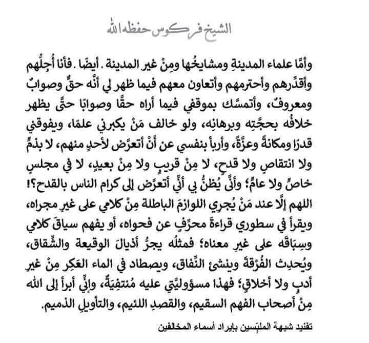 قال العلامة الشيخ ربيع بن هادي المدخلي حفظه الله تعالى :