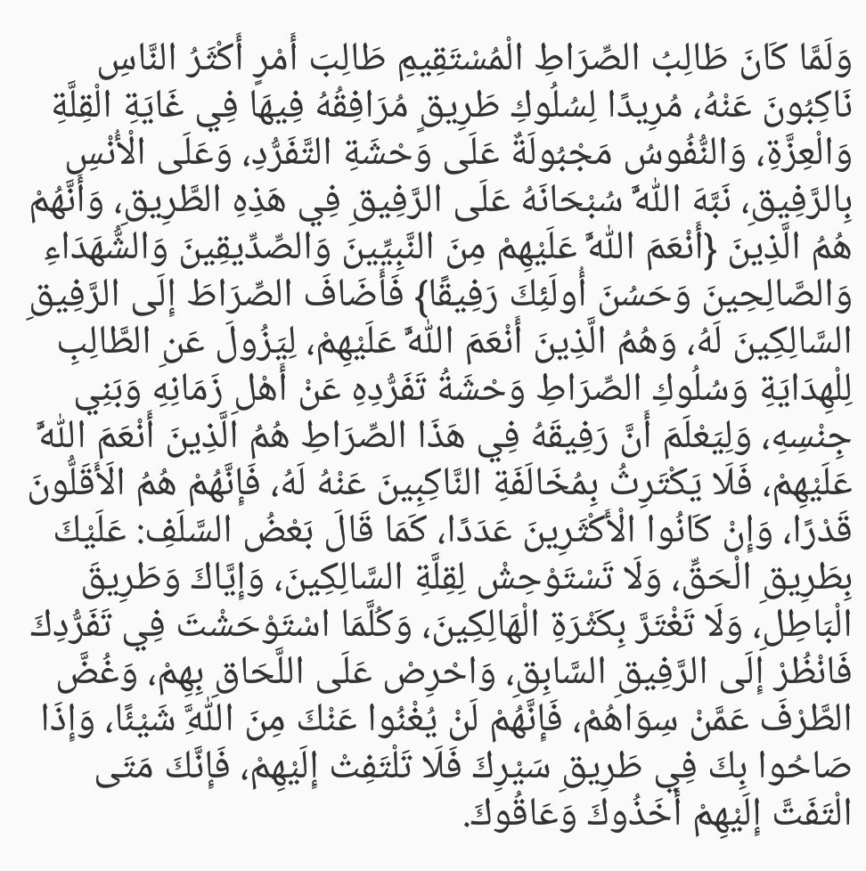 ابن القيم:"وكنا إذا اشتد بنا الخوف، وساءت منا الظنون، وضاقت بنا الأرض؛ أتيناه، فما هو إلا أن نراه ونسمع كلامه؛ فيذهب ذلك كله، وينقلب انشراحاً وقوة ويقيناً وطمأنينة".