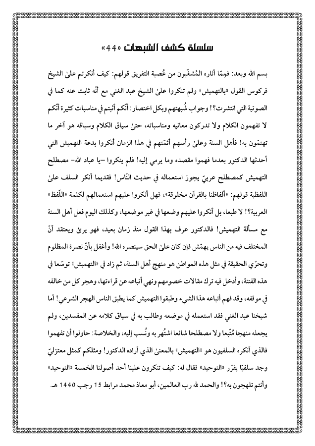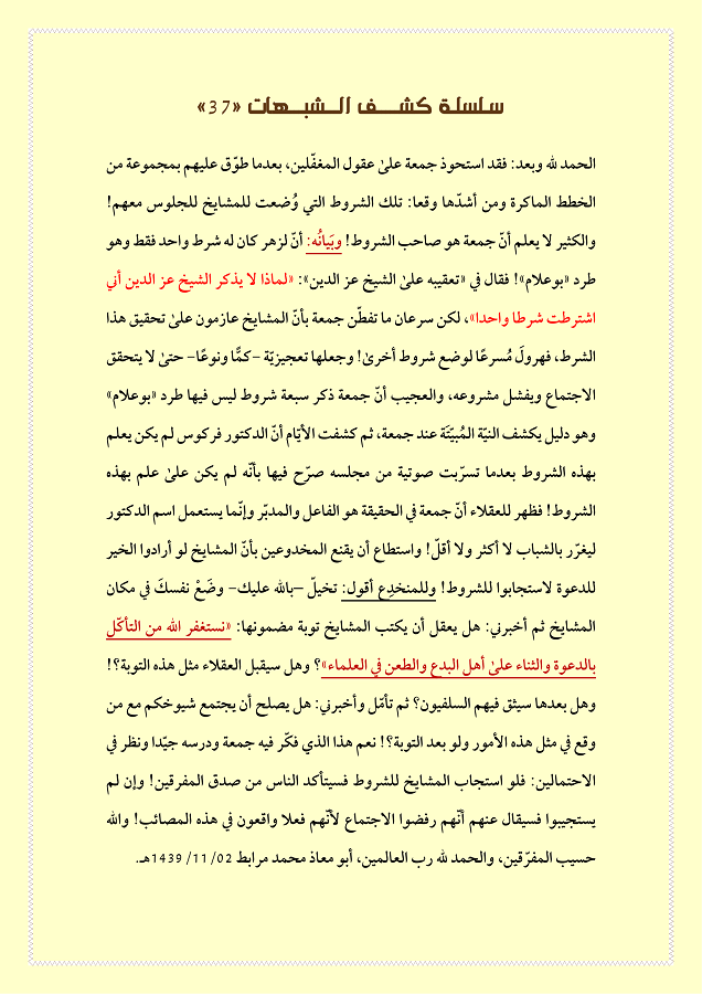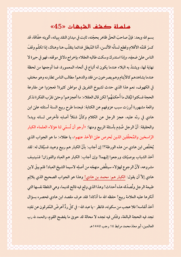 سلسلة: (كشف الشبهات) كل الحلقات من العدد: (1) إلى: (100)