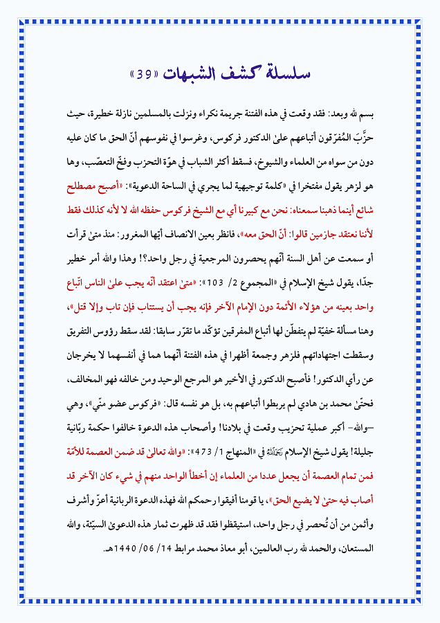 البحث عن المشاركات التي كتبها أبو معاذ محمد مرابط