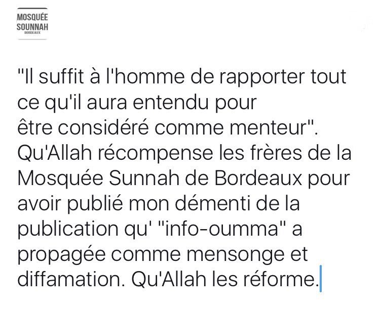 " كفى بالمرء كذبا أن يحدث بكل ما سمع" وجزى الله إخواننا في مسجد السنة ببوردو