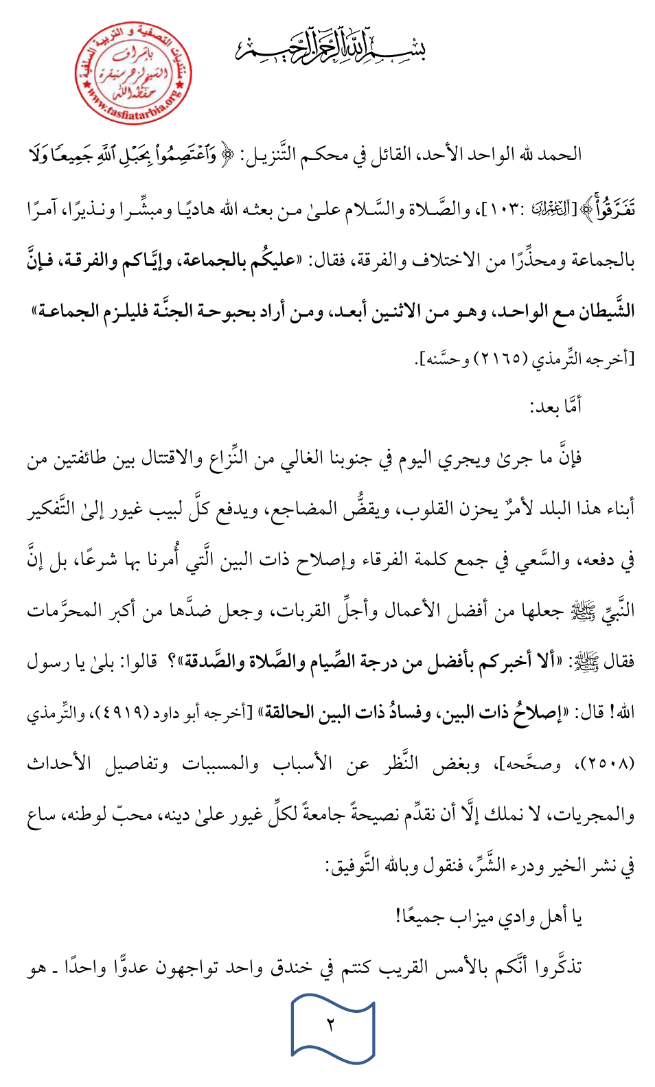 نسأل الله تعالى أن يجمع كلمتنا على البر والتقوى وأن يلهمنا طريقة السلف الصالح التي هي أولى.