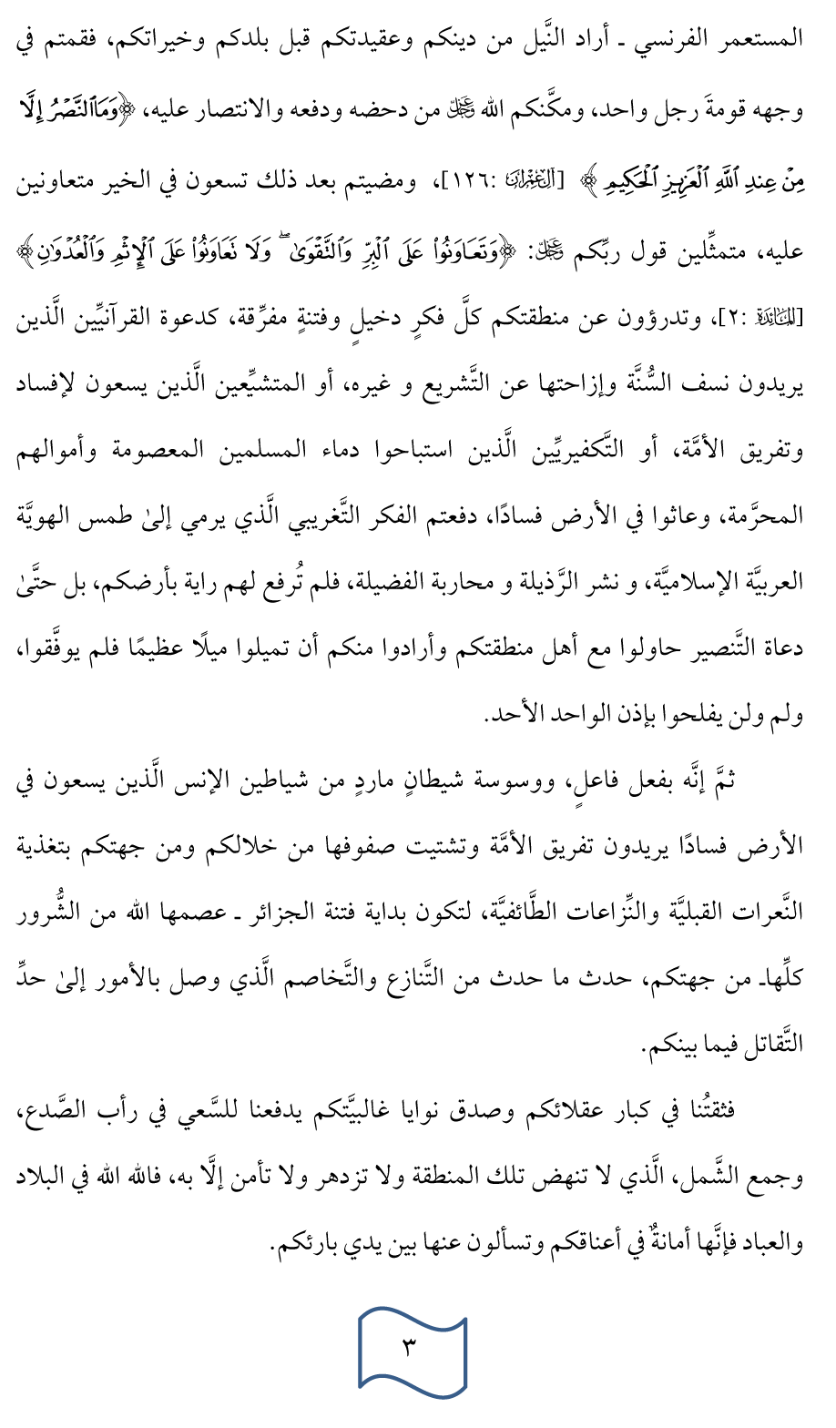 جزاكم الله خيرًا شيخنا الفاضل على نصحكم، ووفق الله أهل وادي ميزاب لامتثالها والعمل بها.