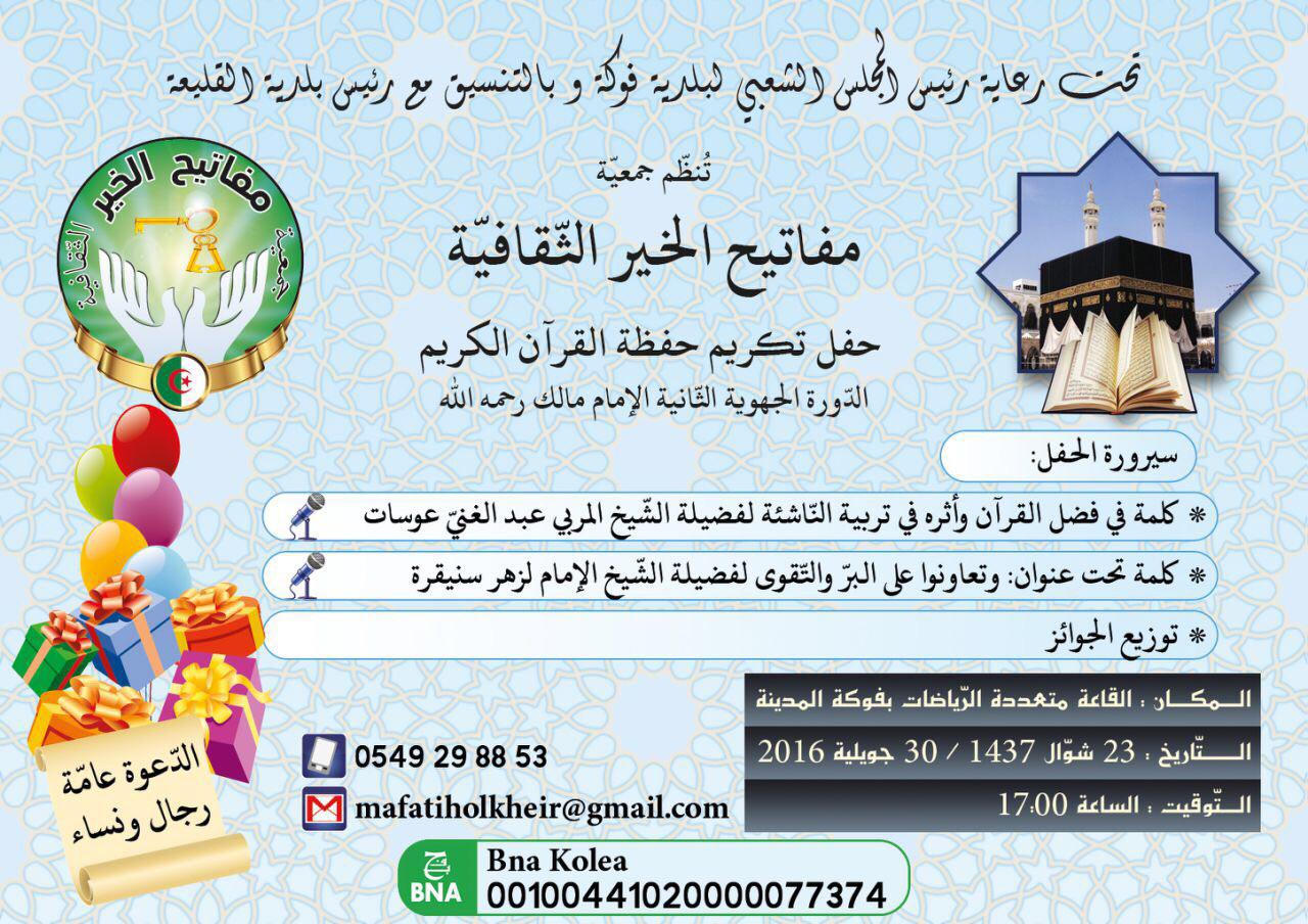 حفل تكريمي بحضور الشيخ عبد الغني عويسات والشيخ لزهر سنيقرة حفظهما الله