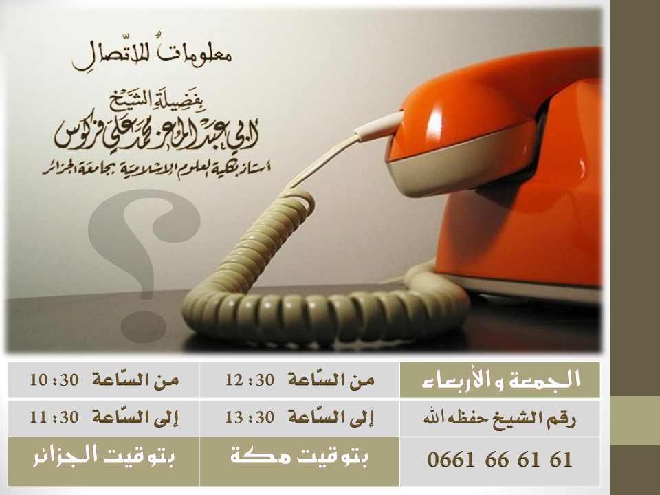 افتراضي معلومات للاتصال بالشيخ محمد علي فركوس حفظه الله