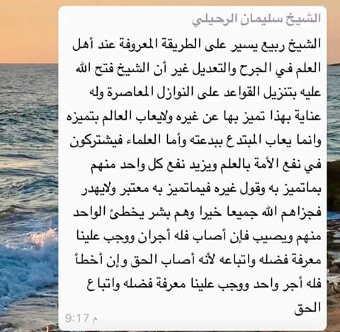 الحمد لله والصلاة والسلام على رسول الله وعلى آله وصحبه ومن تبع هداه وبعد فهذا ثناء جديد للشيخ سليمان الرحيلي حفظه الله على فضيلة الشيخ العلامة حامل لواء الجرح والتعديل ربيع السنة حفظه الله ورعاه
