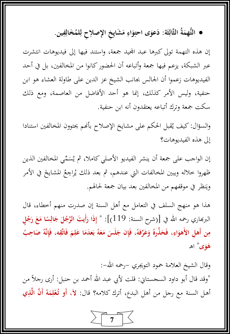 3_ دعوى احتواء مشايخ الإصلاح للمخالفين.
