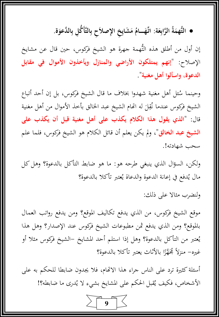 4_ اتهـــــــام مشايخ الإصلاح بالتأكل بالدعوة.