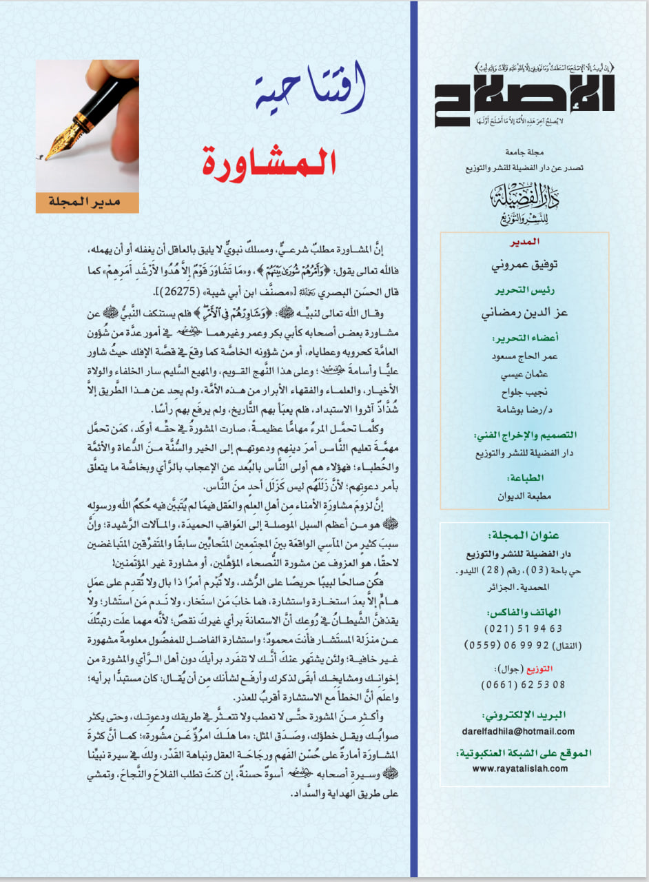 "مشاورة أهل السُنّة والفلاح مبدأ مشايخ العلم والإصلاح"