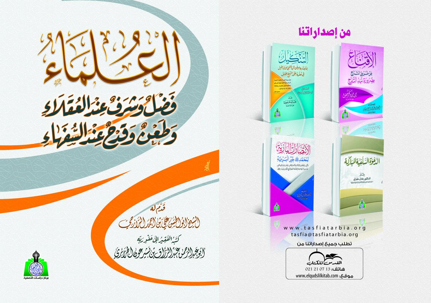 1ـ العلماء فضل وشرف عند العقلاء، وطعن وقدح عند السفهاء