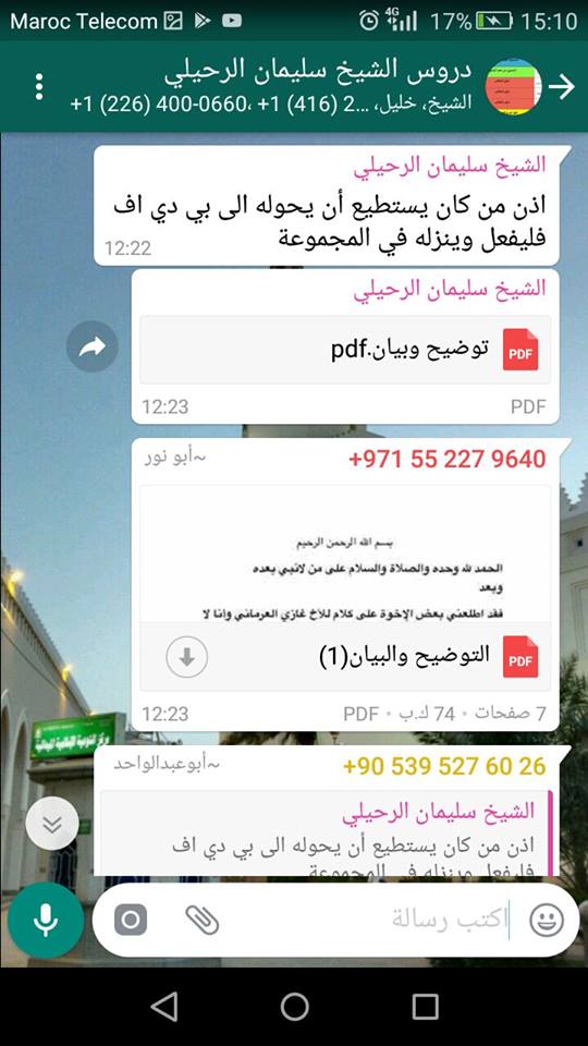 :: مجموعة الشيخ سليمان الرحيلي حفظه الله تعالى على الواتس .::